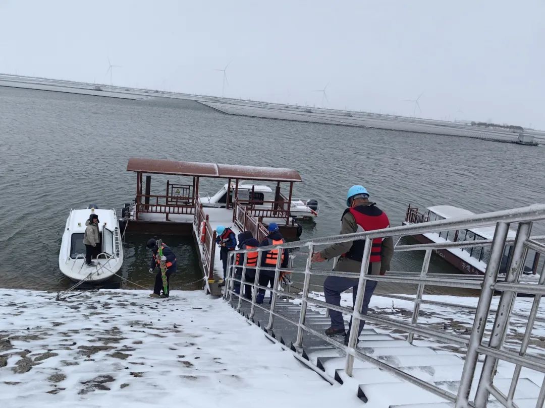 德州丁莊光伏項目現(xiàn)場,冒雪搶修集電線路故障。其他光伏電站主動對光伏支架、傳輸設(shè)備儀器開展專項安全隱患排查。各風(fēng)電場運行人員及時清理設(shè)備積雪,加強對箱變、匯集線路、機組葉片等重點區(qū)域的特巡,做好隱患排查,確保設(shè)備安全穩(wěn)定運行。