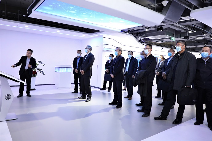 會前,錢智民一行參觀了中國重燃展廳,詳細了解項目進展、“科研工程化”管理體系運作情況,并與上海、沈陽兩地視頻連線,了解現(xiàn)場設(shè)計、制造協(xié)同工作進展,對全體參研人員表示慰問。