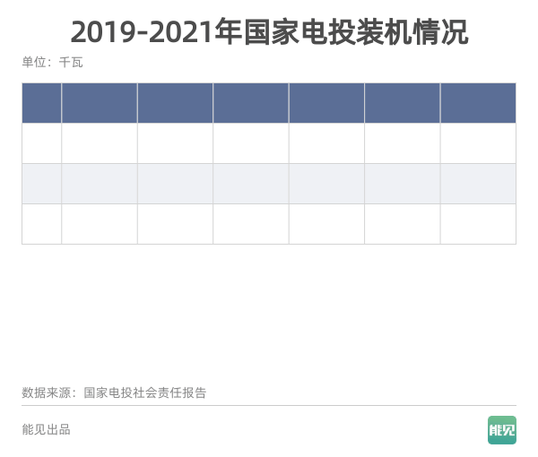 接下來(lái)看2019-2021年五大發(fā)電集團(tuán)分類裝機(jī)情況變化表。