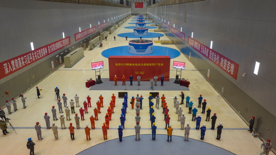 本網(wǎng)訊(謝澤)12月20日8時50分,隨著9號機組正式并網(wǎng)運行,在建規(guī)模世界第一、裝機規(guī)模全球第二的金沙江白鶴灘水電站16臺百萬千瓦機組全部投產發(fā)電,這標志著我國在長江之上全面建成世界最大清潔能源走廊。當日,全部機組投產發(fā)電儀式在白鶴灘水電站右岸廠房舉行,三峽集團董事長、黨組書記雷鳴山致辭并宣布全部機組投產發(fā)電,國家能源局云南監(jiān)管辦公室黨組書記、監(jiān)管專員郝瑞鋒,國家電網(wǎng)副總經理、黨組成員陳國平,哈電集團董事長、黨委書記曹志安,東方電氣黨組副書記宋致遠,一重集團副總經理、黨委常委關永昌在視頻分會場出席儀式并致辭。