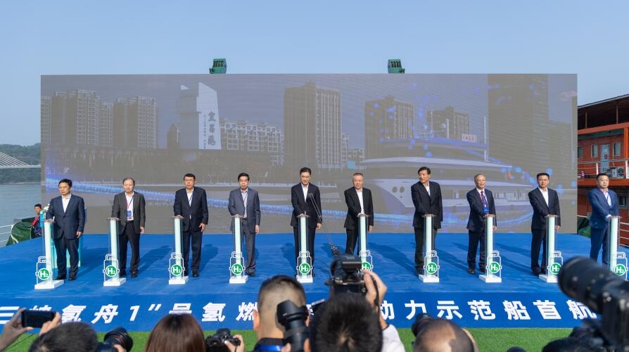 大會期間,我國首艘入級中國船級社的氫燃料動力船“三峽氫舟1”號在湖北宜昌完成首航,標(biāo)志著氫燃料電池技術(shù)在內(nèi)河船舶應(yīng)用實現(xiàn)零的突破。湖北省委常委、副省長邵新宇出席首航式并宣布啟航,雷鳴山、王良友出席首航式。該船由三峽集團(tuán)所屬長江電力參與研發(fā)建造,對推動“氫化長江”進(jìn)程、加快內(nèi)河航運(yùn)綠色低碳發(fā)展具有示范意義。