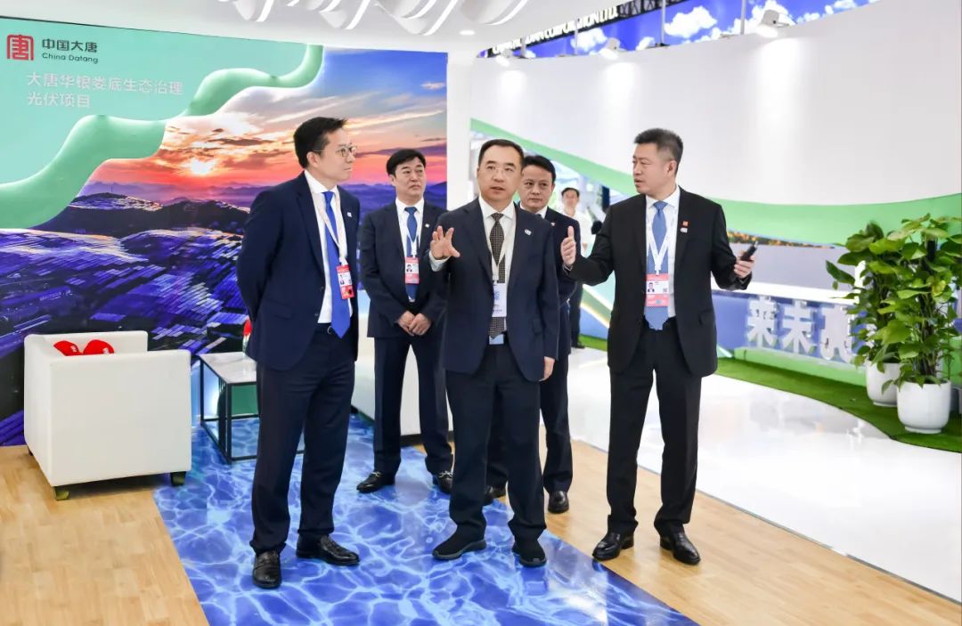 開幕式后,鄒磊、彭勇一行到中國大唐展廳和與中國大唐有深度合作關系的特電變工、隆基展區(qū)參觀。
