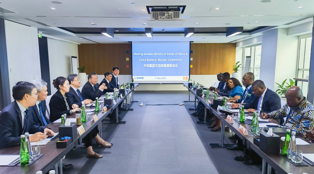 為進(jìn)一步推動(dòng)核能國際合作,促進(jìn)核能在應(yīng)對氣候變化中發(fā)揮更大作用,11月30日至12月1日第28屆聯(lián)合國氣候變化大會(COP28)期間,中核集團(tuán)董事長余劍鋒率團(tuán)出訪阿聯(lián)酋,與阿聯(lián)酋核能公司董事總經(jīng)理兼總裁哈馬迪舉行會談,雙方簽署了第三國核能聯(lián)合開發(fā)與投資的諒解備忘錄。訪阿期間,余劍鋒還應(yīng)約會見了世界核協(xié)會總干事萊昂、加納能源部長普倫佩,就進(jìn)一步深化合作達(dá)成共識。