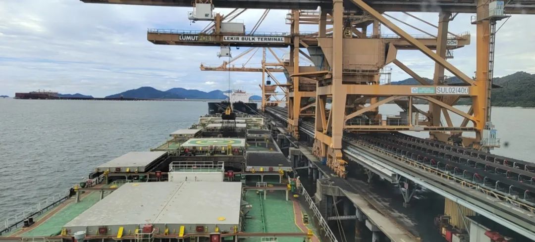 圖為“神華802”輪正在馬來(lái)西亞盧穆特碼頭卸貨