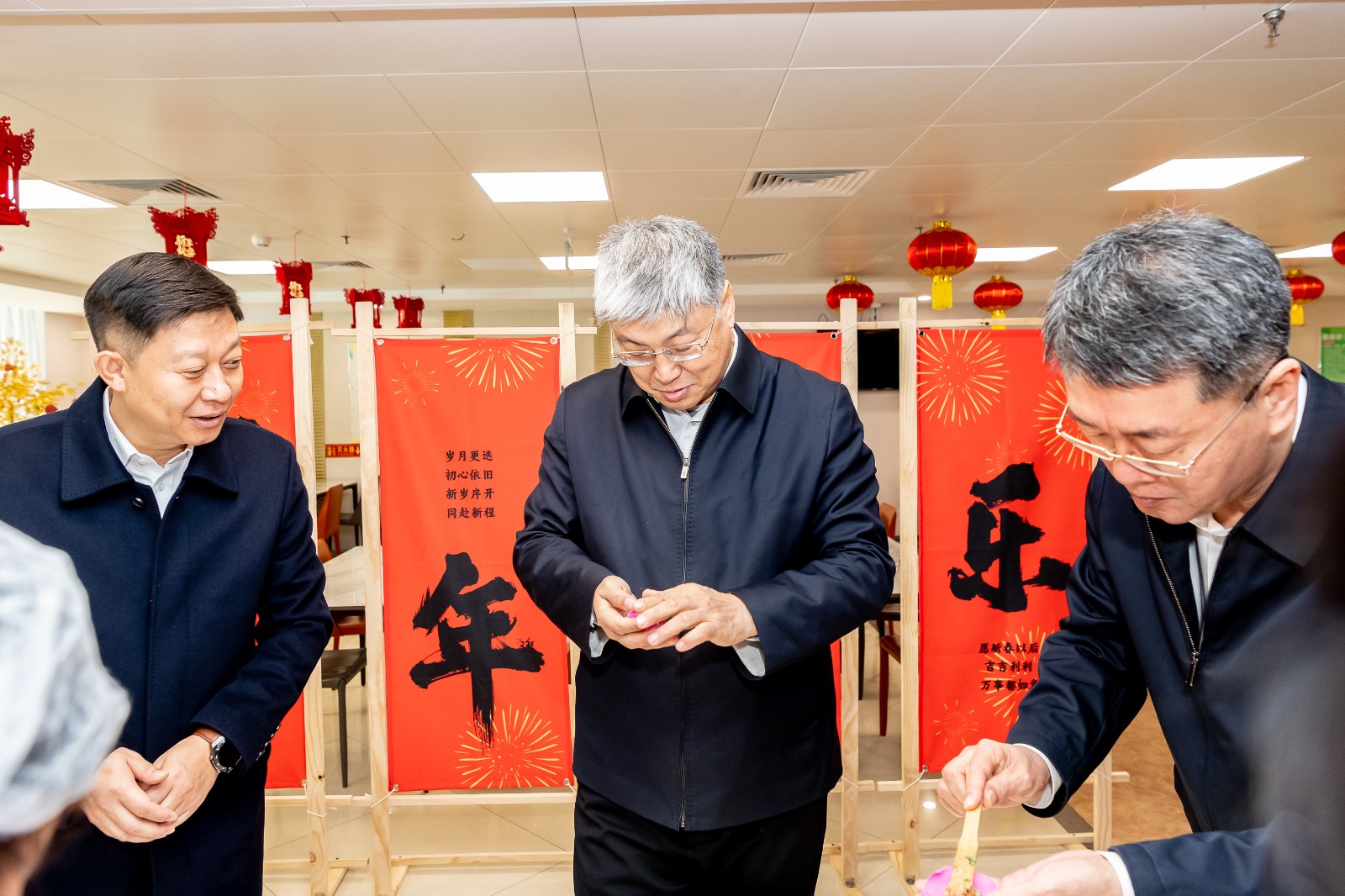 會(huì)后,劉國(guó)躍帶隊(duì)看望慰問(wèn)集團(tuán)生產(chǎn)運(yùn)營(yíng)協(xié)同調(diào)度指揮中心、新聞中心、電力營(yíng)銷公司、銷售集團(tuán)、化工工程、化工公司、國(guó)際公司、置業(yè)公司、鐵路裝備、數(shù)智科技、信息技術(shù)分公司、電力運(yùn)行生產(chǎn)監(jiān)控中心等單位在崗值班的干部職工,并與置業(yè)公司員工一起為值班員工包餃子,送上新年祝福。