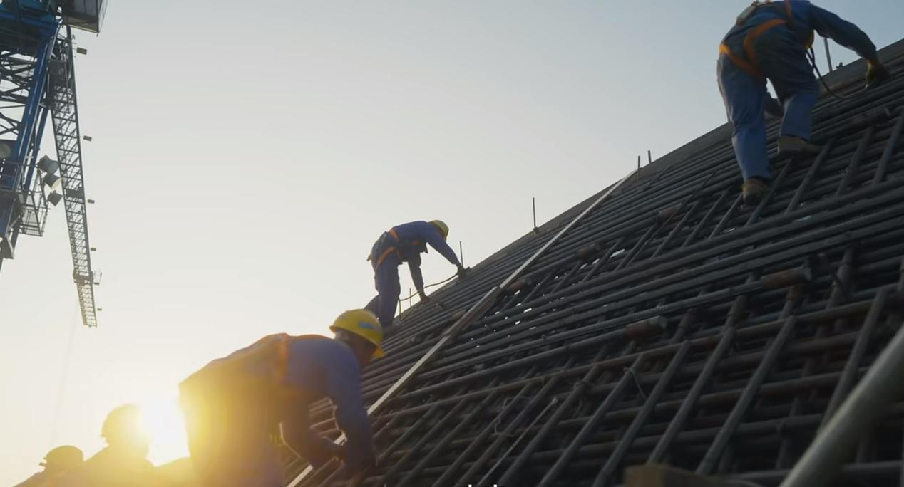 龍年春節(jié)期間,太平嶺核電站1號(hào)機(jī)組完成外穹頂驗(yàn)收工作,進(jìn)入建設(shè)關(guān)鍵期。8000多名建設(shè)者堅(jiān)守現(xiàn)場(chǎng),以熱火朝天的干勁投入工作。在面積約5個(gè)籃球場(chǎng)大小的穹頂上,數(shù)十名施工人員像“蜘蛛俠”一樣,趴在機(jī)組的最高點(diǎn)“敲敲打打”,對(duì)已經(jīng)完成安裝的穹頂鋼筋進(jìn)行檢查驗(yàn)收,干著以毫米為單位的精細(xì)活。
