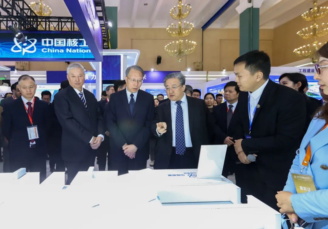 中國科學(xué)技術(shù)協(xié)會書記處書記殷皓,國家原子能機構(gòu)副主任劉敬,工業(yè)和信息化部、生態(tài)環(huán)境部(國家核安全局)、國家能源局相關(guān)司局負(fù)責(zé)人,中核集團董事長余劍鋒,中國核學(xué)會理事長王壽君,中核集團副總經(jīng)理馬文軍以及來自國內(nèi)外的政府官員、企業(yè)代表和專家出席開幕式,并參觀了中核集團展臺。當(dāng)天下午,中核集團副總經(jīng)理曹述棟出席集團公司科研設(shè)施國際開放發(fā)布會并致辭,總會計師王學(xué)軍參觀了集團展臺。