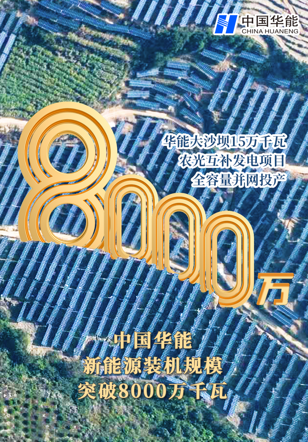 近日,隨著中國華能大沙壩15萬千瓦農(nóng)光互補(bǔ)發(fā)電項(xiàng)目全容量并網(wǎng)投產(chǎn),中國華能新能源裝機(jī)規(guī)模突破8000萬千瓦。至此,公司全口徑發(fā)電裝機(jī)總?cè)萘客黄?.5億千瓦,低碳清潔能源裝機(jī)占比再創(chuàng)新高達(dá)到48.47%。