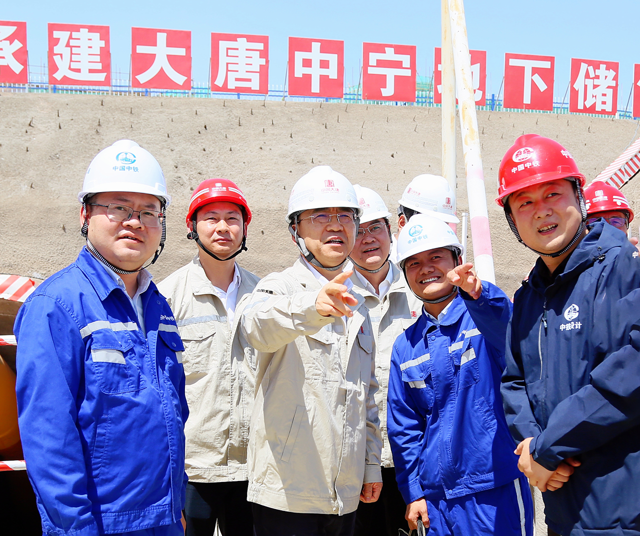 7月3日抵達寧夏后,鄒磊一行第一時間驅(qū)車來到大唐中寧100兆瓦壓縮空氣儲能綠色低碳技術攻關項目現(xiàn)場,在中衛(wèi)市委書記張利、市長馬洪海陪同下調(diào)研項目建設推進情況。