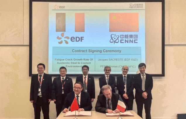 會上,雙方技術(shù)人員分別就智能建造、數(shù)字核電、核能供熱、新技術(shù)與新材料等主題進行了交流討論,核動力院、中國核建創(chuàng)新研究院分別與法國電力集團簽署了環(huán)境疲勞、先進核電工程建設(shè)技術(shù)2個研發(fā)項目合作協(xié)議。會議期間,代表團一行還參觀調(diào)研了法國電力集團雷納迪埃爾研發(fā)中心的材料老化研究院(MAI)及所屬實驗室和實驗設(shè)施。
