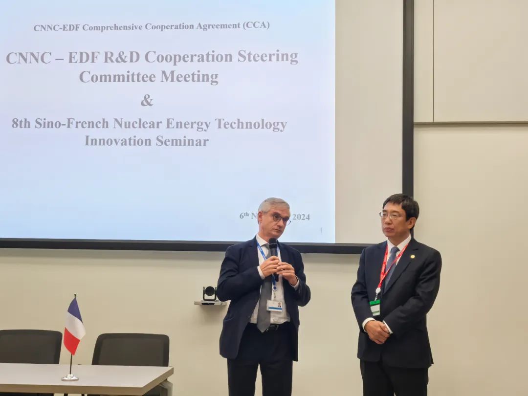 11月6日,第八屆中法核能技術(shù)創(chuàng)新研討會暨中核集團-法國電力集團全面合作協(xié)議(CCA)研發(fā)指導委員會在巴黎成功召開,中核集團副總經(jīng)理辛鋒,法國電力集團(EDF)高級執(zhí)行副總裁、首席技術(shù)官、研發(fā)部總裁Bernard SALHA出席會議并致辭。