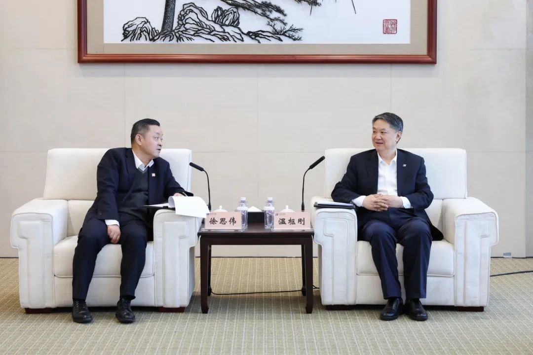 溫樞剛對徐思偉、莫德旺一行的到來表示歡迎,對中國國新一直以來對中國華能的支持表示感謝,并介紹了華能能源保供、經(jīng)營發(fā)展、產(chǎn)業(yè)布局、綠色轉型、科技創(chuàng)新等情況。