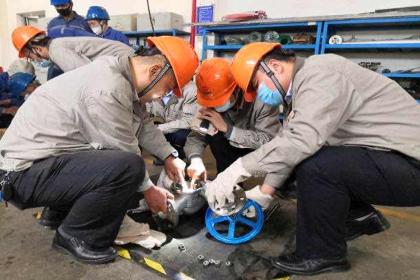 競賽內(nèi)容分為理論知識考試和實際操作考核兩個部分。該公司高度重視此次競賽,制定詳細的競賽實施方案,細化技能競賽考試內(nèi)容及組織形式,重點考察員工對專業(yè)理論知識及閥門拆解順序要點的掌握程度。比賽過程中,參賽人員有條不紊地進行閥門解體檢查、盤根更換、密封面研磨、復(fù)裝等工序,整個過程緊張有序、忙而不亂,充分展示了精湛的操作技能、良好的專業(yè)素養(yǎng)和精神風貌。