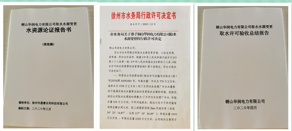 中國電力網(wǎng)訊 2020年4月24日銅山華潤電力有限公司取得新的取水許可證,標(biāo)志著銅山華潤電力有限公司取水水源變更項目順利完成。