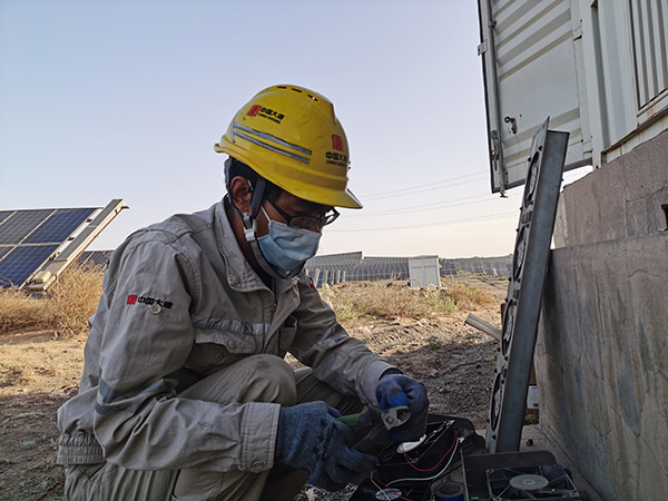 6月是光伏發(fā)電的高峰期,但環(huán)境溫度高、地域風(fēng)沙大,導(dǎo)致現(xiàn)場逆變器室積塵嚴(yán)重,設(shè)備散熱效果不佳,部分散熱風(fēng)扇受當(dāng)?shù)仫L(fēng)沙影響,無法正常工作,逆變器室因溫升限負(fù)荷報警,一定程度上制約了光伏板正常發(fā)電。“難題”擺在眼前,卻難不倒這群大漠電站的年輕人,為不影響峰值輻照的發(fā)電量,他們搶在太陽升起前便開始動身,備好備件、持好工具,快速趕到現(xiàn)場,一頓“快查、快拆、快換”靈活操作,2小時完成了40多個堵塞風(fēng)扇的更換工作。到太陽高照的時候,他們再次赴現(xiàn)地檢查和處理低效發(fā)電組串,解決處理限制發(fā)電量的突發(fā)異常。一次次地現(xiàn)場排查、問題處理促進(jìn)了發(fā)電量穩(wěn)步提升。