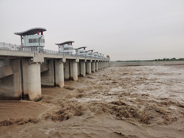 中國(guó)電力網(wǎng)訊 今年7月,黃河上游來(lái)水頗豐,日均流量超過(guò)2000m³/s。內(nèi)蒙古大唐國(guó)際海勃灣水利樞紐開發(fā)有限公司嚴(yán)格執(zhí)行水庫(kù)調(diào)令,聯(lián)合黃河海勃灣水利樞紐管理局集中開展清淤排沙工作。在排沙調(diào)度運(yùn)用現(xiàn)場(chǎng),該公司排沙洞和泄洪閘門全開,構(gòu)成了群龍并發(fā)、巨浪翻滾的壯闊場(chǎng)面。