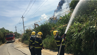 中國電力網(wǎng)訊  7月23日,華潤溫州電廠外3公里的北嶺山上濃煙滾滾。10時32分,電廠消防隊接到地方的增援求救后,火速組織一輛消防車、五名消防隊員奔赴現(xiàn)場救援。