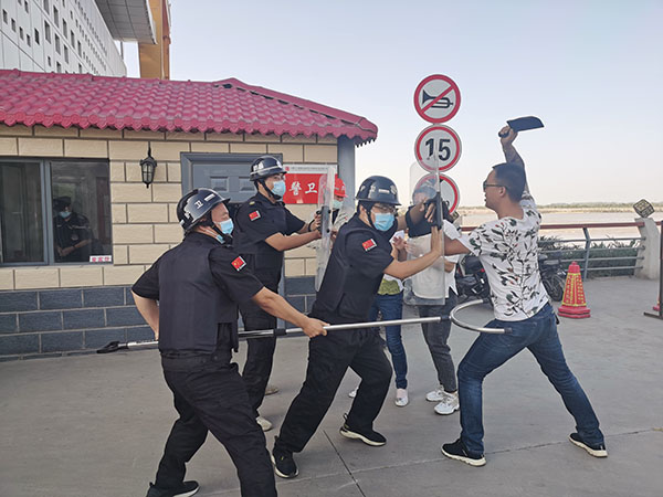 本次演練根據(jù)企業(yè)規(guī)模情況、突發(fā)事件人數(shù)及影響范圍,重點圍繞10人以下的突發(fā)性群體事件開展,參演職工由治安保衛(wèi)人員及公司分管安全、后勤及綜合服務(wù)保障等人員組成,現(xiàn)場模擬了一行社會團伙在廠區(qū)門口處堵截公務(wù)車輛通行、尋釁滋事、聚眾斗毆的場景,現(xiàn)場職工和治安保衛(wèi)人員通過啟動應(yīng)急預(yù)案、信息傳達、布置警戒、匯報上級、召集會議、制定措施到落實執(zhí)行,緊張有序地完成了演練任務(wù)。過程中,首先對事情相關(guān)人員進行勸說,經(jīng)過正當(dāng)渠道和方法提供處理途徑,再對聚眾鬧事負責(zé)人單獨分開協(xié)商,最后對混亂局面進行控制。通過對可能突發(fā)的各種情形進行可靠控制,有效保障了生產(chǎn)辦公秩序正常進行。