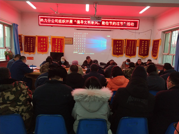 中國(guó)電力網(wǎng)訊 為貫徹落實(shí)習(xí)近平總書記關(guān)于厲行節(jié)約、反對(duì)浪費(fèi)特別是制止餐飲浪費(fèi)行為的重要指示精神。2月9日,新疆兵團(tuán)一師電力阿拉爾熱力分公司組織開(kāi)展“倡導(dǎo)文明新風(fēng)、勤儉節(jié)約過(guò)節(jié)”活動(dòng)。