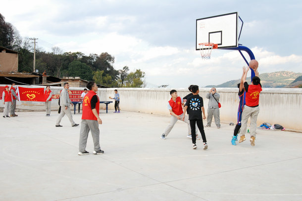 活動(dòng)當(dāng)天,村民活動(dòng)室人頭攢動(dòng),身穿紅馬甲的志愿者向村民發(fā)放防范電信詐騙、疫情防控知識(shí)宣傳手冊(cè);開(kāi)展黨的十九屆六中全會(huì)精神宣講,創(chuàng)文、愛(ài)國(guó)衛(wèi)生知識(shí)問(wèn)答;走訪慰問(wèn)70歲以上的老人,并為村民送上了該公司書(shū)法協(xié)會(huì)會(huì)員書(shū)寫(xiě)的新春祝“福”,以及一批文體用品。籃球場(chǎng)上、乒乓球桌前,吸引了眾多老勒村民前來(lái)觀看和吶喊助威,友誼賽豐富村民文化生活,增進(jìn)民族團(tuán)結(jié)情。