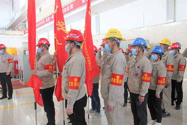 活動中,該公司黨委委員、紀委書記、工會主席李強同志宣讀了公司黨委印發(fā)《關(guān)于在1號機組A級檢修工作中充分發(fā)揮黨團組織作用的通知》的文件要求。公司黨委書記、執(zhí)行董事、總經(jīng)理薛福林同志為“1號機組A級檢修”黨員突擊隊、黨員服務隊、青年突擊隊分別授旗。生產(chǎn)一線黨員代表、青年代表分別圍繞1號機組A級檢修工作實際作了《黨員承諾》《青年承諾》。公司黨委委員、副總經(jīng)理錢明雄同志帶領(lǐng)廣大黨員在檢修現(xiàn)場面向鮮紅的黨旗重溫了入黨誓詞。