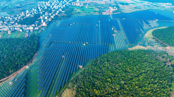 光伏陣列與自然生態(tài)和諧共生成為美麗的山水畫