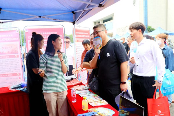 圖為工作人員正在為群眾解答問(wèn)題
