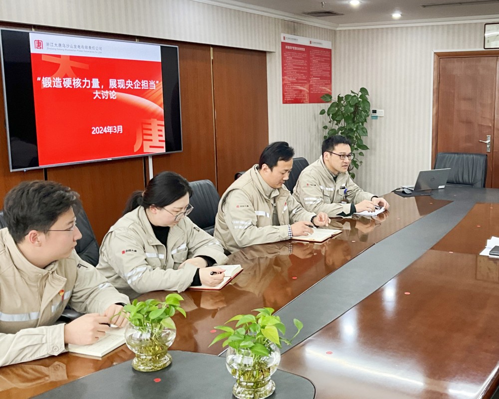 中國(guó)電力網(wǎng)訊(通訊員 孫靜嫻) “鍛造硬核力量 展現(xiàn)央企擔(dān)當(dāng)”大討論活動(dòng)開(kāi)展以來(lái),浙江大唐烏沙山發(fā)電有限責(zé)任公司將大討論活動(dòng)與中心工作緊密結(jié)合,研究制定活動(dòng)實(shí)施方案,明確活動(dòng)時(shí)間節(jié)點(diǎn),扎實(shí)推進(jìn)大討論活動(dòng)走深走實(shí)。