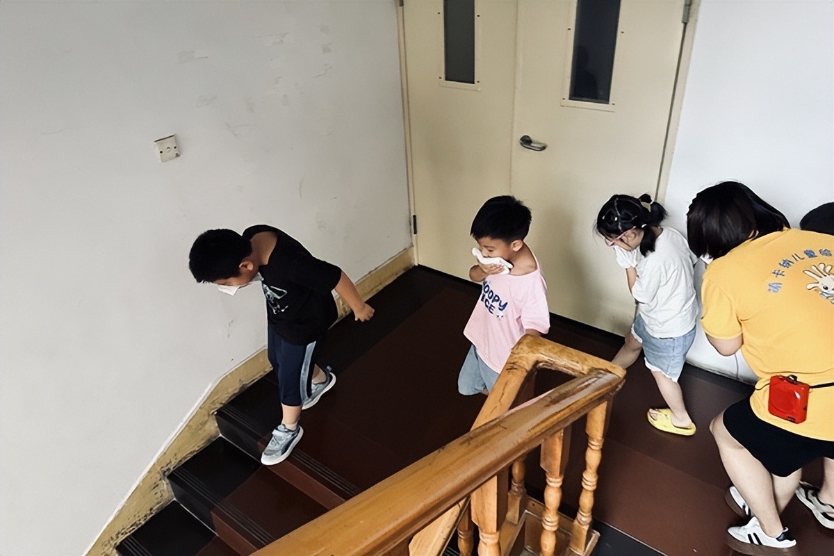 當(dāng)天下午15時(shí)30分,暑托班餐廳響起了警報(bào)聲,托班老師急忙前去查看,發(fā)現(xiàn)了安全門(mén)附近的起火點(diǎn),立即撥打119電話,并迅速組織師生們從另兩個(gè)通道緊急疏散。孩子們用濕手帕掩住口鼻、彎腰俯身,以最快速度有序有組織地向樓下撤離。在龍?jiān)聪腊踩?wù)有限公司6名義務(wù)消防員的指揮下、該公司4名志愿者的協(xié)助下,全體師生用時(shí)2分鐘安全有序地疏散到指定地點(diǎn)。到達(dá)安全區(qū)域后,老師們迅速清點(diǎn)人數(shù),維持好現(xiàn)場(chǎng)秩序,并向指揮員匯報(bào)人數(shù)與撤離情況。