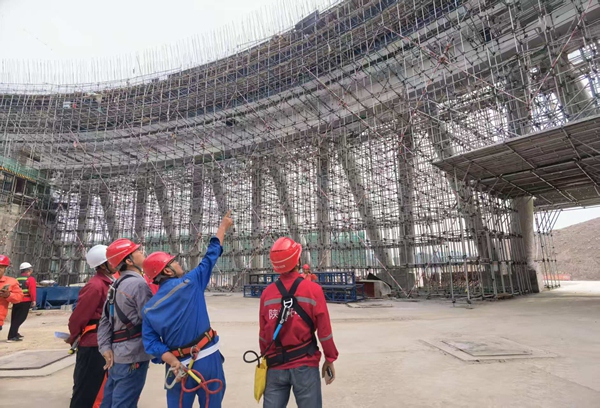 檢查組先后來到2號涼水塔、5、6號鍋爐、生活污水處理池等施工區(qū)域,主要對全場腳手架搭設(shè)拆除情況、高處作業(yè)人員安全防護(hù)用品佩戴使用情況、作業(yè)區(qū)域平臺、欄桿、安全網(wǎng)、水平繩設(shè)置情況等進(jìn)行了全面檢查,就現(xiàn)場檢查發(fā)現(xiàn)的安全文明施工問題提出了整改要求,并就如何改善施工作業(yè)環(huán)境、提高作業(yè)效率、全面提升文明施工水平等與各項(xiàng)目負(fù)責(zé)人進(jìn)行了溝通交流。
