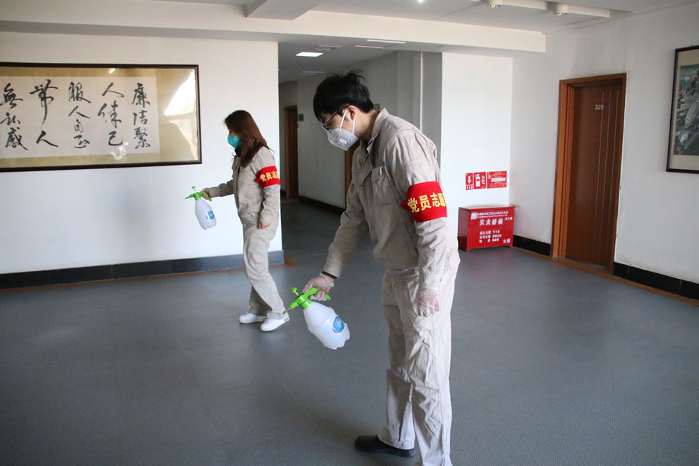 大唐長春第二熱電有限責(zé)任公司職工為辦公區(qū)域進(jìn)行日常消毒工作
