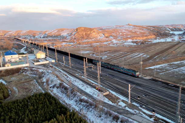 圖為滿載煤炭的列車行駛通過大準(zhǔn)線九蘇木站