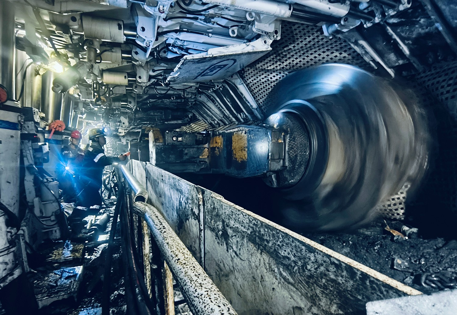 圖為棗泉礦采煤機(jī)司機(jī)正在調(diào)試運(yùn)行參數(shù)
