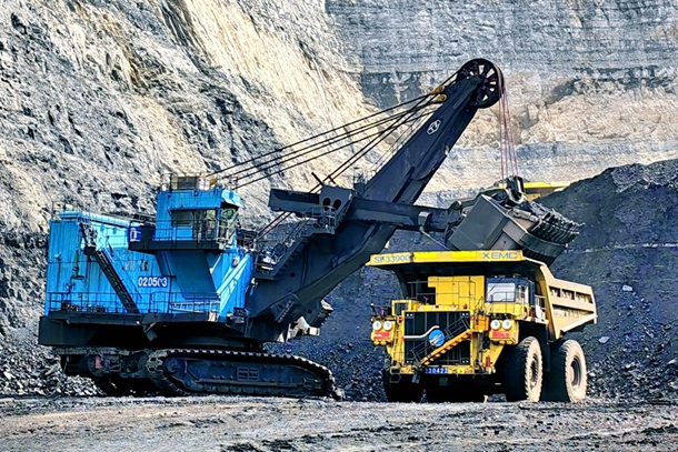 圖為黑岱溝露天煤礦電鏟在采煤區(qū)進行裝車作業(yè)