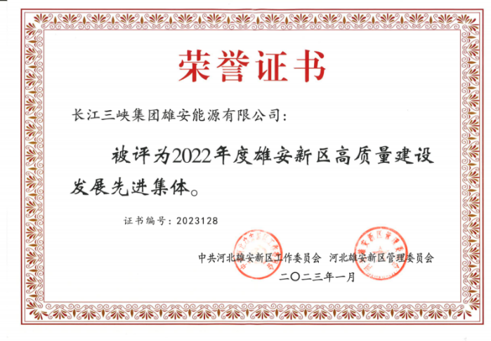 2022年,三峽雄安公司全體黨員干部職工牢記“國之大者”,主動服務國家戰(zhàn)略,全面融入雄安新區(qū)建設(shè),工作取得了突破性進展:2022年6月成為唯一一家和新區(qū)三縣簽訂戰(zhàn)略協(xié)議的中央企業(yè),謀劃“清潔能源+生態(tài)環(huán)保+鄉(xiāng)村振興”開發(fā)模式,在三縣均有生態(tài)環(huán)保、清潔能源項目落地,積極展現(xiàn)三峽集團講政治、強擔當良好形象,獲得國務院國資委官方媒體報道并受到新區(qū)管委會高度肯定。