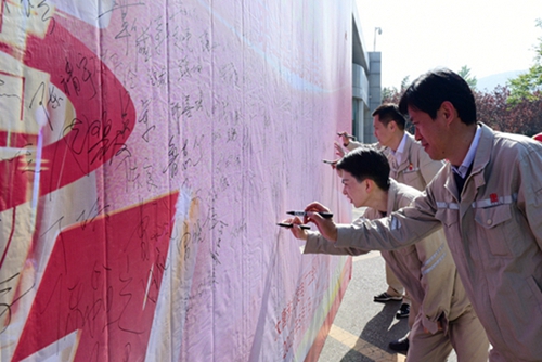 大家積極有序在簽名背板上鄭重簽下自己的姓名,踴躍與勞動(dòng)模范交流合影,紛紛表示要以榜樣模范為標(biāo)桿,立足崗位,力爭(zhēng)上游,把勞動(dòng)熱情和創(chuàng)業(yè)激情傾力投入到企業(yè)高質(zhì)量發(fā)展各項(xiàng)工作中,全力在“二次創(chuàng)業(yè)”新征程中建功立業(yè)。