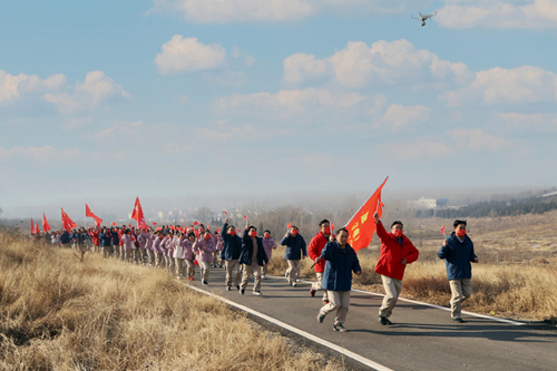 徒步隊伍精神飽滿、興致高昂、闊步向前,走出廠門后從虎山腳下沿黃營村棗林觀光道向上前行。途經(jīng)之處生態(tài)風(fēng)景獨(dú)特、空氣凌冽清澈,全體人員邁著矯健的步伐、排著整齊的隊伍、揮舞著鮮艷的國旗,激情迸發(fā)、活力四射,徒步完成近7公里的路程,在碧空湛藍(lán)、冬陽高照的風(fēng)景里,描繪了一幅幅團(tuán)結(jié)一心、眾志成城的拼搏畫面。