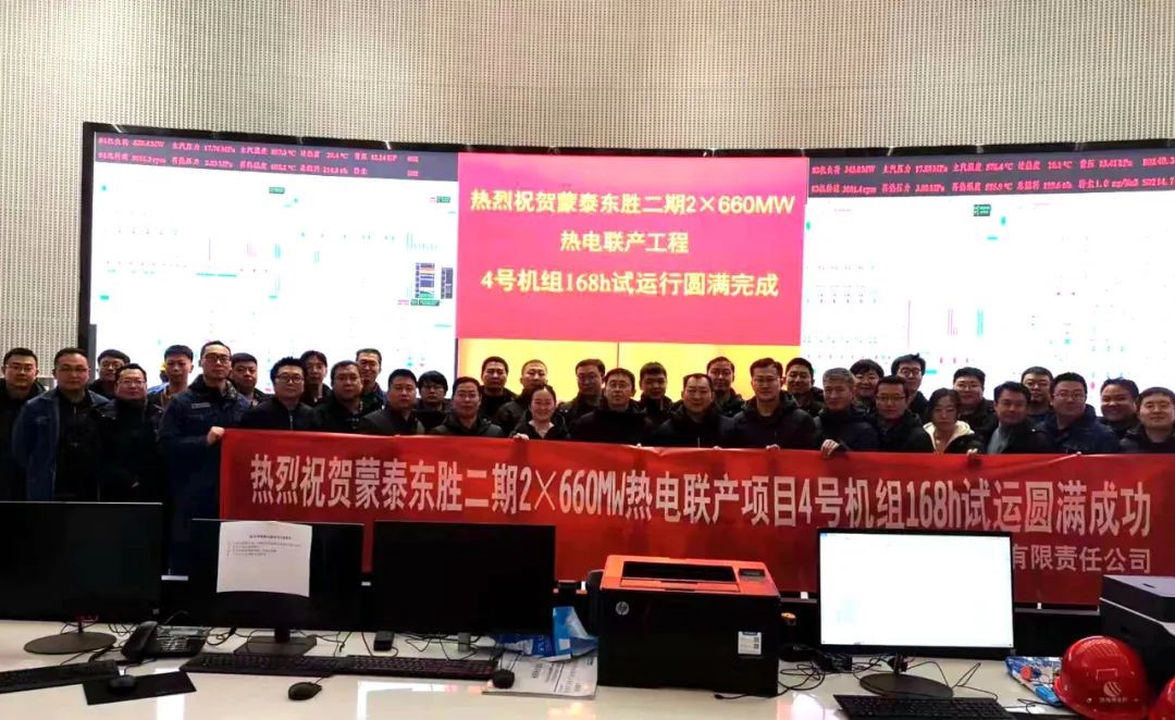 2022年4月,電科院成立蒙泰東勝二期調(diào)試項(xiàng)目部,迅速派出七個(gè)專業(yè)骨干組成調(diào)試隊(duì)伍奔赴現(xiàn)場(chǎng),經(jīng)過(guò)近九個(gè)月的協(xié)力奮戰(zhàn),團(tuán)隊(duì)高度融合,通過(guò)規(guī)劃項(xiàng)目進(jìn)度,編制調(diào)試方案等一系列動(dòng)作,圓滿完成兩臺(tái)機(jī)組調(diào)試工作。蒙泰東勝二期調(diào)試項(xiàng)目創(chuàng)造了多個(gè)“一次成功”的佳績(jī),6月30日啟備變及3、4號(hào)機(jī)組廠用系統(tǒng)受電一次成功,9月24日擴(kuò)建配套500kV送出工程啟動(dòng)一次成功,10月18日3號(hào)機(jī)組鍋爐首次點(diǎn)火一次成功,11月19日3號(hào)機(jī)組汽機(jī)沖車定速一次成功,11月23日3號(hào)機(jī)組并網(wǎng)一次成功,12月13日3號(hào)機(jī)組168小時(shí)試運(yùn)行一次成功,11月7日4號(hào)機(jī)組鍋爐首次點(diǎn)火一次成功,12月15日4號(hào)機(jī)組汽機(jī)沖車定速一次成功,12月17日4號(hào)機(jī)組并網(wǎng)一次成功,直至1月6日4號(hào)機(jī)組168小時(shí)試運(yùn)行一次成功,順利實(shí)現(xiàn)“雙機(jī)雙投”目標(biāo)。