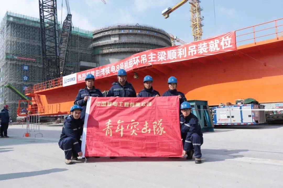 為確保田灣8號(hào)機(jī)組環(huán)吊吊裝工作順利進(jìn)行,田灣項(xiàng)目部組織成立“核田遇”青年突擊隊(duì),充分發(fā)揮總承包優(yōu)勢(shì),協(xié)同相關(guān)參建單位通力配合,從設(shè)備到貨、地面組裝、軌道調(diào)整與焊接、環(huán)吊倒運(yùn)和吊裝引入等方面,提前識(shí)別風(fēng)險(xiǎn)因素,制定應(yīng)對(duì)措施,優(yōu)化施工方案,編制切實(shí)可行的施工計(jì)劃。青年突擊隊(duì)通過定期組織召開專題會(huì)、現(xiàn)場(chǎng)碰頭會(huì)等形式,協(xié)調(diào)解決現(xiàn)場(chǎng)制約因素,切實(shí)把現(xiàn)場(chǎng)安全、質(zhì)量、進(jìn)度管理工作緊密結(jié)合,確保了8號(hào)機(jī)組環(huán)吊主梁順利吊裝就位。