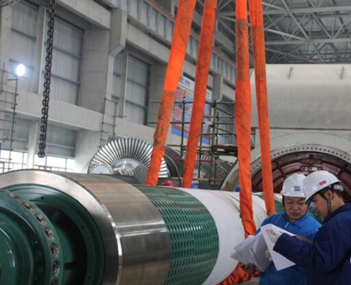 作業(yè)人員正在進行轉子檢查試吊、調整轉子水平