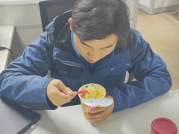 “最大的困難還是吃飯,大年三十晚上我們還能點(diǎn)到外賣,從初一開始就沒有店鋪營(yíng)業(yè)了,泡面就是我們的工作餐。”王子豪感嘆道。