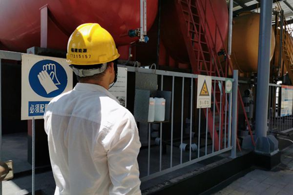 “報(bào)告主值,化水區(qū)域設(shè)備運(yùn)行正常,1號(hào)酸罐液位1.6米,2號(hào)酸罐液位…… ”化學(xué)巡檢人員正拿著對(duì)講機(jī)匯報(bào)巡檢情況,我們可以從鏡頭上看到,高溫的洗禮下整件衣服都已經(jīng)貼著后背,滿(mǎn)臉大汗就不在話(huà)下。