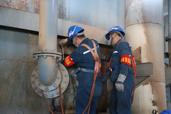 一個(gè)黨支部就是一座堡壘,一個(gè)黨員就是一面旗幟,疫情防控嚴(yán)峻形勢(shì)下,灰硫車間黨支部戰(zhàn)斗堡壘在助力安全生產(chǎn)中迸發(fā)出強(qiáng)大力量。3月16日1點(diǎn)40,吸收塔漿液漏泄,影響脫硫系統(tǒng)安全運(yùn)行,存在環(huán)保參數(shù)超標(biāo)風(fēng)險(xiǎn),轉(zhuǎn)機(jī)班在接到缺陷后,立即組織全員上陣,黨員廖振海,李亞洲、楊得志在檢修中率先垂范,爭(zhēng)做表率,全身上下被漿液淋濕浸透也絕不后退半步,利用自制的木頭塞經(jīng)過(guò)5次嘗試臨時(shí)封堵住漏點(diǎn),并用6mm鐵板自行焊接制作密封盒,內(nèi)部澆灌水泥,徹底消除了漏泄的隱患,確保了環(huán)保設(shè)備安全運(yùn)行?;伊蜍囬g在對(duì)灰場(chǎng)2號(hào)除灰管道巡視檢查中發(fā)現(xiàn)灰管道漏泄,為了避免發(fā)生環(huán)保事件,機(jī)械班迅速組織人員搶修。工作中,黨員王雷、吳侃,工作組成員夏延鵬沖鋒在前,進(jìn)入到冰冷的水中用卡具封堵漏點(diǎn),由于搶修及時(shí)避免了環(huán)保事件的發(fā)生,保證了我廠除灰渣系統(tǒng)安全可靠運(yùn)行?;伊蜍囬g黨支部在特殊時(shí)期,積極響應(yīng)廠黨委的號(hào)召,嚴(yán)格執(zhí)行我廠各項(xiàng)工作部署,黨員帶頭沖鋒一線,堅(jiān)決守住人身、設(shè)備、環(huán)保底線,體現(xiàn)“硬核”擔(dān)當(dāng),用行動(dòng)展示基層黨支部昂揚(yáng)向上的精神面貌。