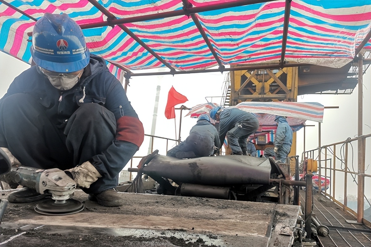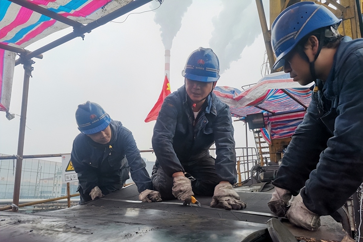 早春的風(fēng),帶著絲絲寒意,伴隨著細(xì)細(xì)春雨,讓人倍感寒冷,但在最短的時(shí)間內(nèi)完成搶修任務(wù)的強(qiáng)烈責(zé)任感,讓現(xiàn)場每一個(gè)燃運(yùn)檢修人員忘卻了寒冷。斗輪機(jī)懸臂皮帶定位、新皮帶轉(zhuǎn)運(yùn)、硫化機(jī)設(shè)備吊裝……每一項(xiàng)工作都是耗費(fèi)體力的“大工程”。為了搶抓時(shí)間,在三天的搶修工作中,燃運(yùn)檢修人員在崗位上就餐,中午和晚上也顧不上休息,加班加點(diǎn)投入到搶修攻堅(jiān)戰(zhàn)中,不敢有絲毫懈怠。