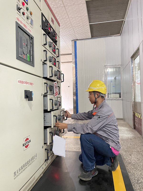 龔鑫(檢修團支部書記):我現(xiàn)在正和青年黨員劉俊在一期脫硫區(qū)域對1A粉倉漿液循環(huán)泵變頻器進行主板更換和參數(shù)調試工作。由于變頻器故障,導致粉倉漿液循環(huán)泵不能正常啟動運行,為保證機組更快具備開機條件,工作人員在完成檢修項目后立馬又轉戰(zhàn)到設備消缺工作,為機組搶發(fā)電量設備安全平穩(wěn)運行,順利迎峰度夏打下堅實的設備基礎。作為發(fā)電企業(yè)的青年員工,我們要立足崗位,全力以赴完成機組檢修,認真消除設備隱患,不留余力的保障機組設備安全穩(wěn)定運行,勇?lián)嗄耆说膴^進使命。