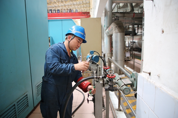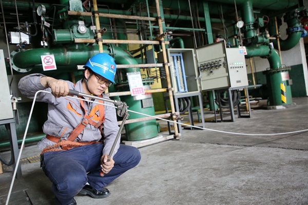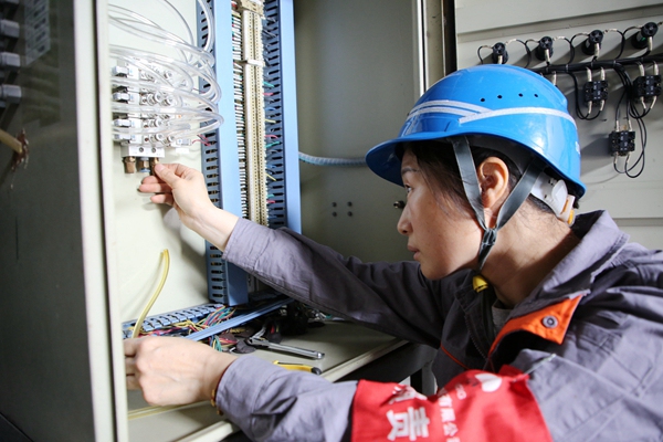 熱控三班彭郴梅正在進(jìn)行2號機(jī)精處理就地?zé)峥卦O(shè)備檢修