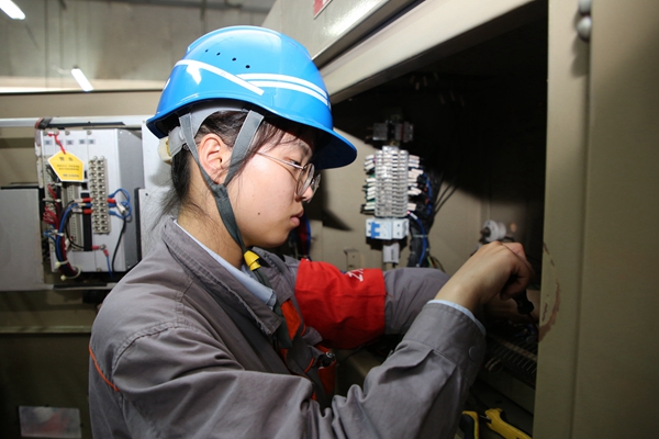 電控班吳皓正在2號機(jī)6kV室對更換后的B排粉機(jī)開關(guān)二次插板進(jìn)行接線