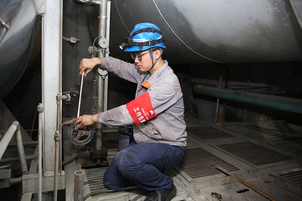 防磨防爆檢查組成員汪亮正在低過進(jìn)行防磨防爆檢查