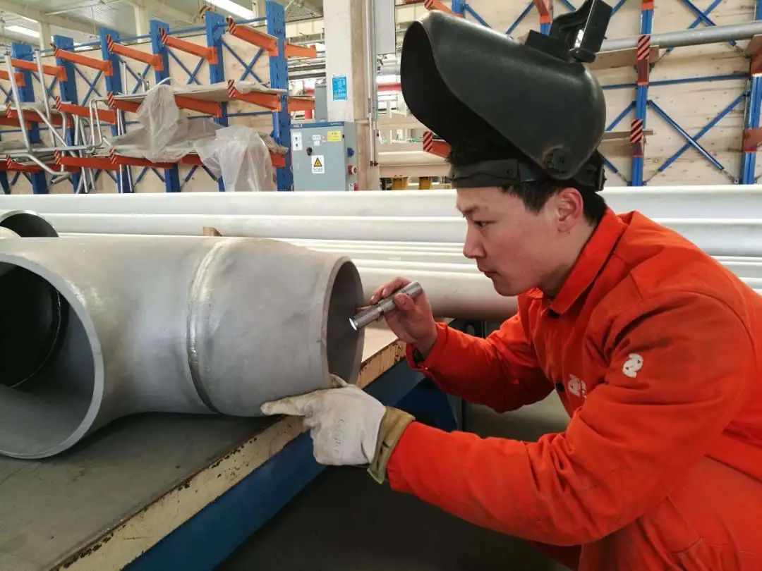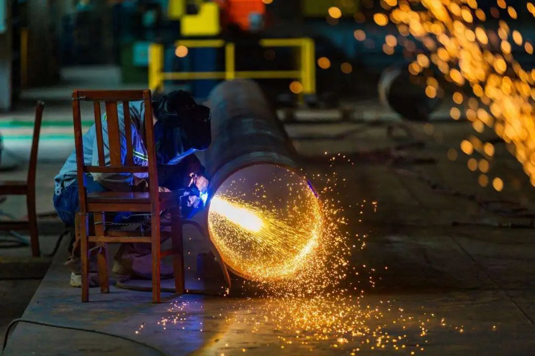 豆存印正在檢查焊縫。但對豆存印來說,他的焊接合格率早已實現(xiàn)100%,出于嚴(yán)謹(jǐn)性考慮,焊接完成后他還會用肉眼再檢查一遍焊縫是否合格,以確保沒有任何細(xì)微的瑕疵遺漏。