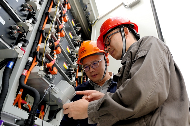 設(shè)備調(diào)試中,往往需要不止一次地反復(fù)驗證。5號電池艙通訊與EMS后臺通訊存在頻繁中斷的現(xiàn)象,廠家經(jīng)采取更換通訊電纜及裝置、加裝抗干擾磁環(huán)等措施,問題仍未消除。伍玉祥帶著團隊一起重新梳理通訊柜的接地線,仔細分析原因并改變接地方式,終于解決5號電池艙通訊中斷的難題。